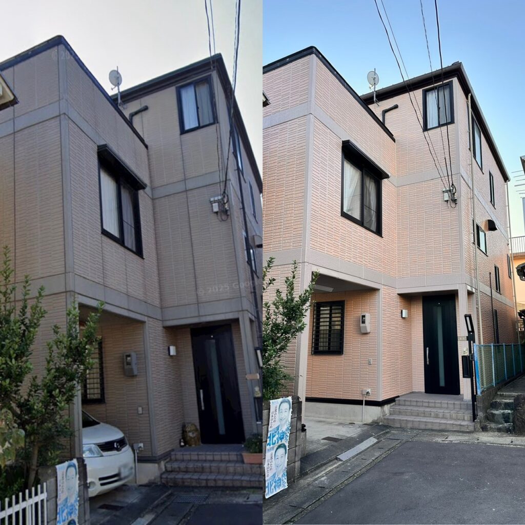 施工後のお住まいは、外壁の印象も明るくなり、安心して雨の日を迎えられる状態に整いました。